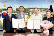 ㈜한국탑뉴스 송행임 기자 | 진주시는 2일 6·25전쟁 참전 유공자인 ‘故 김판식 일병’과 ‘故 윤도기 일병’의 유가족인 고인들의 조카 김형원, 윤성수 씨에게 각각 화랑무공훈장을 전수했다. 이번 훈장 전수식은 국방부와 육군본부의 ‘6·25전쟁 무공훈장 주인공 찾기 캠페인’ 사업에 따라 당시 공적에도 불구하고 여러 사정으로 수여되지 못했던 훈장을 뒤늦게나마 유가족에게 전함으로써, 호국영웅들의 숭고한 희생과 헌신을 기리고 그 명예를 선양하기 위해 마련됐다. ‘故 김판식 일병’과 ‘故 윤도기 일병’은 1954년에 국방부에서 무공훈장 수여 대상자로 결정했으나 당시 실물 훈장을 받지 못했다. 이번에 ‘6·25전쟁 무공훈장 주인공 찾기 캠페인’사업으로 70여 년 만에 조카를 통해 무공훈장을 받게 됐다. 훈장을 대신 받은 ‘故 김판식 일병’의 조카 김형원 씨는 "나라를 위해 목숨 바쳐 싸우셨던 작은아버지를 잊지 않고 찾아주시고 명예를 드높여 주셔서 정말 감사하다"며 소감을 밝혔다. 훈장을 전수한 조규일 진주시장은 "70여 년이 지난 오늘이라도 늦게나마 훈장을 전달해 드리게 되어 영광스럽게 생각한다”며 “조국을