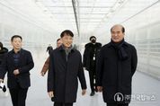 ㈜한국탑뉴스 송행임 기자 | 상주시는 1월 16일 한국수자원공사(K-water) 재생에너지본부 오봉근 본부장이 낙동강 수열에너지단지 조성사업 현장을 방문해 사업 추진 현황을 점검했다고 밝혔다. 수열에너지는 여름철 수온이 대기보다 낮고, 겨울철에는 높은 특성을 활용하여 물을 열원으로 히트펌프를 통해 냉난방하는 시스템으로, 상주시는 낙동강의 풍부한 수자원과 기존 취수시설을 활용하여 농업분야(스마트팜)에 최초로 수열에너지를 도입했다. 탄소중립 실현과 에너지 전환 정책의 일환으로 총사업비 60억원을 투입하여 스마트팜혁신밸리(2ha)에 600RT의 수열에너지를 공급하고 있으며, 이번 사업을 통해 기존 시설대비 2025년 한해 약 79만kwh의 에너지를 절감했다. 오봉근 한국수자원공사 재생에너지 본부장은 “상주시 수열에너지 사업은 전국 최초로 지자체 관로를 이용하여 대규모 스마트팜에 적용한 모범적인 활용 사례”라며 “동일한 조건에서 수열과 공기열이 비교 가능하다는 점에서 수열에너지 사업에 초석이 되는 사례로 긴밀한 협력을 통해 안정적인 사업 추진과 기술 지원을 이어가겠다”고 말했다. 강영석 상주시장은“이번 현