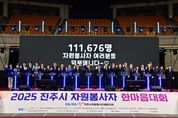 ㈜한국탑뉴스 차복원 기자 | 진주시 자원봉사단체협의회(회장 심명환)는 6일 진주실내체육관에서 자원봉사자와 시민 등 2300여 명이 참석한 가운데 ‘2025 진주시 자원봉사자의 날 기념 한마음대회’를 성황리에 개최했다. 이번 행사는 자원봉사의 날(12월 5일)을 앞두고 마련된 자리로 한 해 동안 지역 곳곳에서 헌신과 나눔을 실천한 자원봉사자들의 노고를 격려하고, 시민과 함께 자원봉사의 가치와 의미를 되새기는 뜻깊은 시간이 됐다. 이날 행사에서는 △그동안 지역사회를 위해 힘쓴 봉사단체의 단체기 입장 △1년간의 자원봉사 활동 영상 상영 △유공자 표창 △감사 메시지 퍼포먼스 △단체별 장기자랑 등이 이어지며 웃음과 감동이 함께했다. 심명환 자원봉사단체협의회 회장은“11만 자원봉사자들이 진주시 곳곳에서 진심으로 헌신하고 있다”며“여러분들이야말로 진주의 희망이자 자랑”이라고 말했다. 조규일 진주시장은 “보이지 않는 곳에서 진심으로 봉사해 주신 모든 분들 덕분에 진주가 더욱 행복한 도시로 빛나고 있다”며, “앞으로도 자원봉사활동이 더욱 활발히 이어질 수 있도록 행정적 지원을 아끼지 않겠다”고 말했다.
