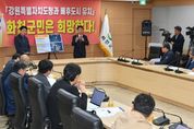 ㈜한국탑뉴스 차복원 기자 | 화천군과 화천군의회가 강원특별자치도 청사와 배후도시 유치 의사를 다시 한번 밝혔다. 최문순 화천군수와 류희상 화천군의장은 22일 군청에서 기자회견을 열고, 간동면 간척리 일대 군유지에 도청 청사와 신도시를 유치하기를 희망한다고 발표했다. 2019년에 이어 두 번째로 열린 이날 기자회견에서 화천군과 화천군의회는 첫째, 지난 2021년 12월6일 도에 제출한 청사 유치 제안서에 대한 회신을 4년이 지난 지금까지 받지 못했다며 검토 결과를 신속히 답변할 것을 촉구했다. 둘째, 만일 청사 이전이 불가하다면, 배후도시 건설 대상지로 균형발전의 당위성과 최적의 입지를 갖춘 화천군 간동면 간척리 지역을 적극 검토해줄 것을 요청했다. 화천군이 제안한 간동면 간척리 군유지는 약 110만㎡(33만평)가 넘는 광활한 땅으로, 현재 도청 부지의 약 44배가 넘는 규모다. 이 부지는 도시계획법에 따라 대부분이 개발 가능한 계획관리지역으로, 청서 건축과 배후도시 건설에 지금이라도 사용될 수 있다. 또한 지금의 도청에서 21㎞, 동서고속화철도 화천역과 불과 1.6㎞ 거리다