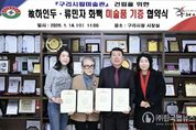 ㈜한국탑뉴스 송행임 기자 | 구리시는 지난 14일 시청 3층 시장실에서 ‘구리시립미술관 건립을 위한 작품 기증 협약식’을 개최했다. 이번 협약식은 한국 현대미술사의 거장 고(故) 하인두 화백의 작품 80점과 류민자 화백의 작품 25점을 기증받고, 문화예술 교류 협력을 공식화하기 위해 마련됐다. 특히 이번 기증은 하인두 화백이 『혼불』 연작을 통해 삶과 예술의 마지막을 불태웠던 아치울 마을이 지닌 장소적 의미를 공공의 문화적 가치로 확장한다는 점에서 각별한 의미를 지닌다. 더 나아가 구리시립미술관 건립은 기술과 속도의 시대 속에서 이웃 간의 온정을 나누고, 인간의 삶을 예술과 사유로 성찰하는 문화 거점으로 기능할 것으로 기대된다. 아치울에 축적된 예술 감수성을 기반으로 한 ‘인문학적 미래미술관’ 모델 제시 구리시는 한국을 대표하는 현대미술 회화 작품을 비롯해, 국내외에서 활발히 활동 중인 동시대 미디어 아티스트 김창겸·이돈아·최현주 작가 등의 작품을 포함해 총 118점의 작품 기증을 확보하며 구리시립미술관 설립을 위한 핵심 기반을 마련했다고 밝혔다. 이번 소장품 확보는 문화체육관광부와 경기도가 요구하는 공립미술관