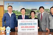 ㈜한국탑뉴스 차복원 기자 | 진도군은 제5대 경기도의회 의원을 지낸 설희석 경기도의정회 부회장이 최근 고향사랑기부금 1,000만 원을 진도군에 전달했다고 밝혔다. 진도군 지산면 출신인 설희석 부회장은 약 30년 만에 고향을 방문해 지역의 발전과 후세대를 위한 따뜻한 마음을 전했다. 설희석 부회장은 “진도는 언제나 마음속의 특별한 곳이었다”라며, “진도군의 발전에 힘이 되길 바라며 고향사랑기부에 동참하게 됐다”라고 말했다. 이에 김희수 진도군수는 “고향을 잊지 않고 따뜻한 마음을 보내주신 설희석 부회장님께 깊이 감사드린다”라며, “소중한 기부금은 고향 발전과 군민의 복리 증진을 위해 뜻깊게 활용하겠다”라고 감사의 말을 전했다. 한편 진도군은 고향사랑기부제가 고향에 대한 건전한 기부 문화로 자리 잡을 수 있도록 적극적인 홍보 활동에 나설 방침이며, 진도군의 고향사랑기부금은 군민의 복지와 지역의 발전에 필요한 공익사업에 사용된다.
