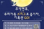 ㈜한국탑뉴스 차복원 기자 | 온가족이 모이는 추석 명절, 익산에 세대 간 공감을 나누는 특별한 프로그램이 마련됐다. 익산시는 추석을 맞아 오는 10월 3일부터 12일까지 시민역사기록관에서 '추석연휴, 우리가족 쓰리고로 즐기자, 기록관 고(Go)'를 운영한다고 29일 밝혔다. 이번 프로그램은 고향을 방문하는 관람객이 옛 시절 정취를 떠올릴 수 있도록 기획됐다. 할아버지·할머니부터 손주까지 세대 간의 소통과 추억을 공유하는 장이 될 전망이다. 우선 '1GO(소원쓰고)'는 가족이 함께 편지를 완성하는 시간이다. 다가오는 2026년 붉은 말의 해를 맞아 가족의 소원을 담은 엽서를 작성해 '기록우체통'에 넣으면 새해 선물로 받을 수 있다. '2GO(함께놀고)'는 할아버지·할머니가 어린 시절 즐겼던 다양한 전통놀이를 손주와 함께 체험할 수 있는 프로그램이다. 이어 '3GO(기록하고)'는 사진촬영 이벤트다. 가장 인상 깊었던 기록물이나 기록관 건물 앞에서 가족사진을 찍어 기록으로 남기면, 연말 크리스마스에 인화본을 선물로 받을 수 있다. 한편 익산