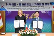 ㈜한국탑뉴스 차복원 기자 | 부여군)은 지난 11일 부여군청에서 폴란드 비엘코폴스카주 크로토신시 대표단을 공식 초청해 자매결연 협정을 체결했다. 이번 협정은 2002년 충청남도와 자매결연을 맺은 폴란드 비엘코폴스카주 내 주요 도시인 크로토신시와의 교류를 기반으로, 광역단체와 기초단체 간 협력망을 확대하고 교류의 다양성과 다각화를 통해 지속 가능한 지방 외교 협력을 추진하기 위해 마련됐다. 협정식에는 박정현 부여군수와 김영춘 부여군의회 의장, 나탈리아 로바코프스카 크로토신시장, 크지스토프 마니스타 크로토신시의회 의장을 비롯해 양측 관계 공무원과 기업인 등이 참석했으며, 이날 행사는 ▲상호 소개 ▲협정서 서명 ▲기념품 교환 ▲기념 촬영 순으로 진행됐다. 양 도시는 2년에 걸친 대화와 상호 방문을 통해 협력의 폭을 넓혀왔으며, 이번 자매결연 체결을 계기로 ▲교육·문화·관광·체육 분야 교류와 ▲농업·경제 분야 등 산업 분야 협력을 중심으로 한 실질적 교류 확대에 나설 계획이다. 특히 부여군은 기존의 아시아 지역 중심의 문화교류에서 한 걸음 더 나아가, 폴란드의 중부 유럽 네트워크를 활용한 유럽 내 교류 기