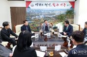 ㈜한국탑뉴스 송행임 기자 | 전라남도는 13일 광주·전남 행정통합 전남도–전남도의회 간담회에서 청와대 오찬 간담회 결과를 비롯해 광주·전남 행정통합 추진 상황과 시·도민 의견수렴 계획, 행정통합 특별법(안) 등을 공유했다. 도의회 초의실에서 열린 간담회에는 김영록 전남도지사, 김태균 전남도의회 의장과 도의원, 광주·전남 행정통합 추진기획단장인 강위원 전남도 경제부지사, 실·국장 등 100여 명이 참석했다. 김영록 지사는 지난 8일 도의회 의원총회에서 광주·전남 행정통합 추진 방향을 직접 설명한 데 이어 다시 도의회를 찾아 연이은 소통 행보를 이어갔다. 특히 9일 청와대 오찬 간담회 결과를 직접 설명하며 대통령이 광주·전남 행정통합을 호남 발전의 전기로 삼아 전폭적인 ‘통 큰 지원’을 약속한 점과 재정·조직·권한 이양 등 중앙정부의 확고한 지원 의지를 상세히 설명했다. 시도민 의견수렴과 관련해선 범시도민협의회와 순회 주민공청회, 온라인 플랫폼 등을 통해 충분한 공론화·숙의 과정을 진행할 예정이라고 밝혔다. 이어 윤진호 전남도 기획조정실장이 행정통합 주요 상황과 특별법 주요 내용 등을 설명