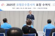 ㈜한국탑뉴스 차복원 기자 | 구로구는 21일 구청 창의홀에서 2025년 모범운수종사자 표창을 수여했다. 구는 모범 운수종사자를 발굴해 표창함으로써 운수종사자의 직업적 사명감을 높이고 이용객에 대한 교통서비스 증진에 이바지하고자 수여식을 마련했다. 표창 대상은 1년 이상 버스, 택시, 화물 등 운수업에 종사하면서 대중교통 질서 확립과 선진교통문화 정착에 노력하거나 타의 모범이 된 자이다. 구는 지난달 버스 회사, 서울용달협회 등 운수업 관련 기관으로부터 모범 운수종사자를 추천받아 결격사유 확인 후, 공적심사를 의뢰해 최종 표창 대상자를 선정하게 됐다. 마을버스 운수종사자 3명, 개인택시 운수종사자 19명, 구로모범운전자회 7명, 화물 운수종사자 6명 등 총 35명이다. 이날 수여식에는 장인홍 구청장을 비롯해 운수업체 관계자 등이 참석해 모범 운수종사자 표창을 축하했다. 구로구 관계자는 “여러분이 구민의 발이 되어 묵묵히 최선을 다해주신 덕분에 구민들이 안전하고 편리한 교통생활을 누릴 수 있었다”며, “앞으로도 지속적으로 운수업계와 소통하며 더 나은 교통문화를 정착하도록 노력하