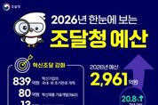㈜한국탑뉴스 차복원 기자 | 조달청은 12월 2일 국회 본회의 의결을 통해 2026년도 예산을 올해 대비 20.8% 증가한 역대 최대규모인 2,961억원으로 확정했다고 밝혔다. 내년도 조달청 예산은 공공조달을 통한 혁신성장 뒷받침을 목표로 혁신조달 강화, 공급망 위기 대응, 조달시스템 인프라 강화에 집중 투입한다. 첫째, 혁신제품 시범구매와 R&D 지원을 확대하여 혁신조달을 강화한다. 정부가 혁신제품의 선도적 구매자(First Buyer)가 되는 국내 시범구매 예산을 올해 대비 270억원 증가한 624억원으로 확대했다. 혁신기업의 늘어난 수요를 반영하고, AI, 로봇 등 융복합 제품과 탄소중립 제품의 국내실증을 확대하여 신산업 성장 생태계 조성에 기여할 계획이다. 중소기업 해외진출의 초기 레퍼런스가 되는 해외실증 예산을 200억원으로 확대하고, 혁신제품 기술개발을 위한 R&D 예산도 80억원 규모로 확보하여 혁신적 조달기업의 스케일업을 총력 지원한다. 둘째, 공급망 위기에 대비한 원자재 비축 역량을 대폭 제고한다. 원자재 공급망 리스크에 선제적으로 대비하기 위한 비축자금 8