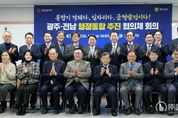 ㈜한국탑뉴스 송행임 기자 | 전라남도와 광주광역시는 12일 나주 전남연구원에서 제1호 광역통합 지방정부 출범을 향한 민관합동 실무기구인 광주·전남 행정통합 추진협의체 첫 회의를 열어 특별법과 시도민 의견수렴, 공론화 방안 등을 논의했다. 광주·전남 행정통합 추진협의체는 광주·전남 각계 대표 20명으로 구성됐다. 당연직 공동위원장으로 강위원 전남도 경제부지사와 김영문 광주시 경제문화부시장이, 민간 공동위원장으로 전남에선 조보훈 전 산업단지공단 부이사장, 광주에선 정영팔 광주지방시대위원장이 각각 맡기로 했다. 협의체 위원은 두 시·도의회, 시군구의회, 기초자치단체장, 경제·사회단체, 교육·문화계 대표 등 광주·전남에서 각각 8명씩 참여했다. 이날 회의에선 김영록 전남도지사와 강기정 광주시장, 시·도 협의체 위원 등 30여 명이 참석한 가운데 9일 청와대 오찬간담회 결과를 보고하고, 시·도민 의견수렴과 공론화 방안, 행정통합 특별법안 등을 논의했다. 전남도와 광주시는 지난 2일 ‘광주·전남 대부흥’의 새 역사를 열기 위한 대통합 공동선언을 발표하고, 행정 지원을 위한 추진기획단 구성·운영에