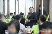 ㈜한국탑뉴스 송행임 기자 | 최민호 세종특별자치시장이 새해를 맞아 환경 관리 일선에서 묵묵히 근무하는 환경관리원들의 노고를 격려하고 감사의 마음을 전했다. 최민호 시장은 12일 연기면 소재 식당에서 시 환경관리원과 운전직 공무원 등 80여 명과 오찬을 함께하며 새해 인사를 전했다. 이 자리에서 최 시장은 시민을 위해 쾌적한 생활환경 조성을 책임지고 있는 현장 근로자들에게 깊은 감사를 표했다. 또 환경관리원과 운전직 공무원에게 안전이 최우선임을 강조하고 안전 장비 착용과 철저한 작업 수칙 준수를 당부했다. 최민호 시장은 “위생적이고 청결한 도시에서 살아갈 수 있는 건 여러분들의 노고 덕분”이라며 “구내식당 조성 등 여러분의 노고에 답할 수 있는 복지 마련을 위해 노력하겠다”고 말했다. 시는 환경관리원을 대상으로 현장 중심 소통을 강화하고 환경관리 업무의 안정적 추진과 근무 만족도 향상에 지속 노력한다는 방침이다.