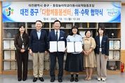 ㈜한국탑뉴스 차복원 기자 | 대전 중구는 13일 통합놀이학교다동 사회적협동조합(대표 이미라)과 다함께돌봄센터 석교1호점 위수탁 운영협약을 체결했다고 밝혔다. 수탁기관으로 선정된 통합놀이학교다동 사회적협동조합은 향후 5년간 다함께돌봄센터의 시설 관리와 운영 전반을 맡아 석교동 일대의 맞벌이 가정과 다자녀 가구 등 양육 부담이 큰 가정을 대상으로 안전하고 다양한 돌봄서비스를 제공할 계획이다. 올해 11월 개소 예정인 다함께돌봄센터 석교1호점은 석교동복합커뮤니티센터 2층에 들어선다. 이곳은 행정복지센터, 작은도서관, 주민자치 프로그램실과 함께 운영되어 지역사회와 긴밀히 연계된 통합 돌봄 환경을 구축할 것으로 기대된다. 김제선 중구청장은 “가정의 양육 부담을 덜어주고 아동이 건강하게 성장할 수 있도록 초등돌봄 기관을 지속해서 확충할 예정이다”라며, “세심한 돌봄서비스를 제공할 수 있는 전문기관과 협력해 아이들이 행복하게 지낼 수 있는 돌봄환경을 조성하도록 최선을 다하겠다 ”라고 말했다.