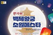 ㈜한국탑뉴스 차복원 기자 | 추석 전날 밤, 익산 백제왕궁이 시민들의 소망을 담은 소원등으로 환히 빛난다. 익산시는 추석 전날인 오는 10월 5일에 유네스코 세계유산 백제왕궁(왕궁리 유적)에서 '한가위 백제왕궁 소원페스타 : 천년의 소원을 담다'를 개최한다고 25일 밝혔다. 참여는 사전 예약과 현장 접수 모두 가능하다. 사전 예약은 오는 29일 오전 10시부터 마수리늘배움협회 누리집을 통해 선착순 800명을 접수하고, 현장에서도 200명을 선착순으로 모집한다. 이번 축제는 시민들이 직접 적은 소원문을 '소원등'에 달아 백제왕궁 밤하늘을 밝히며, 가족과 이웃이 함께 소망을 나누는 특별한 시간으로 꾸며진다. 소원등은 근심을 내려놓고 평안과 희망을 기원하는 상징으로 달맞이, 연등 문화 등의 풍속과 맞닿아 있다. 이에 가족의 안녕을 기원하고 풍요에 감사하는 추석의 의미를 한층 깊게 할 것으로 기대를 모은다. 행사는 오후 5시 소원문 쓰기로 시작된다. 이어 △백제의 마술사 공연 △버블쇼 △사물놀이패와 어우러지는 백제왕궁마을장터 재담마당극 등 다채로운 무대가