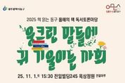 ㈜한국탑뉴스 차복원 기자 | 광주 동구는 오는 11월 1일 오후 3시 30분 전일빌딩 245 옥상정원(전일마루)에서 2025 책 읽는 동구 ‘올해의 책’ 독서 토론마당을 개최한다고 밝혔다. 이번 행사는 ‘올해의 책’ 사업과 연계해 마련된 행사로, 책을 매개로 시민들이 사회문제와 공동체 가치를 함께 생각하며 소통할 수 있도록 돕기 위해 마련됐다. 행사는 1부 2025 ‘올해의 책’ 독서공모전 시상식과 2부 시민 독서 토론마당으로 각각 진행되며, 올해의 책 작가, 청소년, 시민 등 200여 명이 함께할 예정이다. 1부 시상식에서는 그동안 ‘올해의 책’ 함께 읽기에 동참한 시민들과 함께 사회적 독서 운동의 성과를 공유하며 독서 문화 확산의 의미를 되새기는 시간을 가진다. 올해로 6회째를 맞는 ‘올해의 책’ 독서공모전은 전문가와 구민들의 추천으로 선정한 ‘올해의 책’을 개인 독후감과 가족·이웃이 함께 읽고, 독서 경험과 생각을 나눌 수 있는 ‘함께 읽는 우리’ 2개 부문으로 참여하도록 해 꾸준한 호응을 얻고 있다. 지난 7월 1일부터 8월 29일까지 총 726명이 참여해 심사를 거쳐 34명의